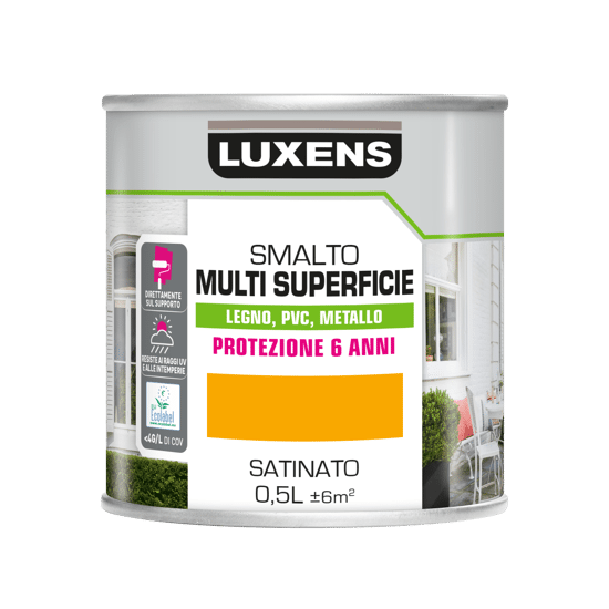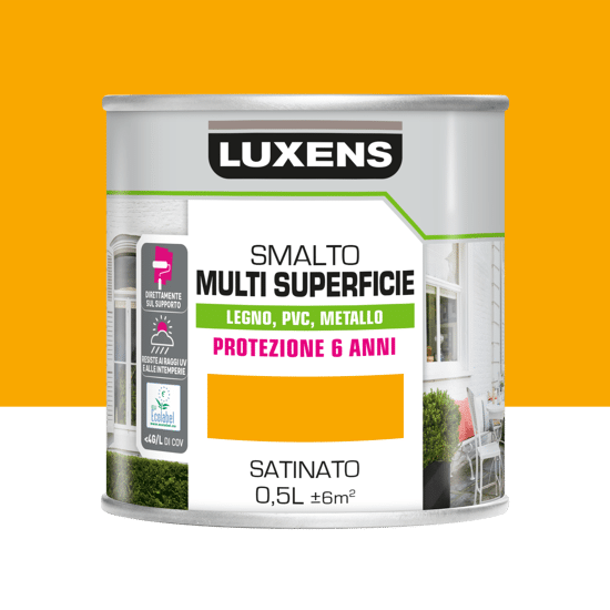 SMALTO ACQUA DA ESTERNO E INTERNO GIALLO SATINATO MULTI SUPERFICIE LUXENS 500ML