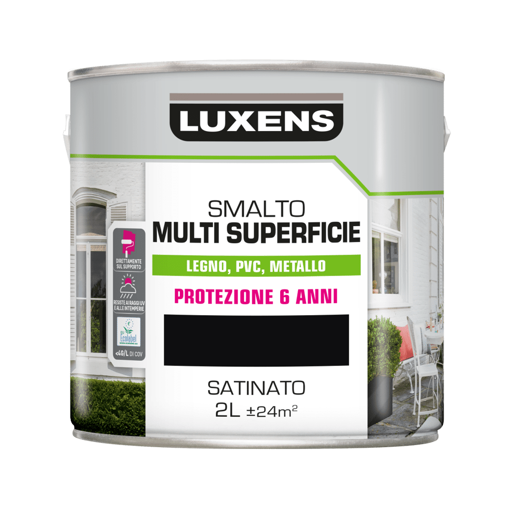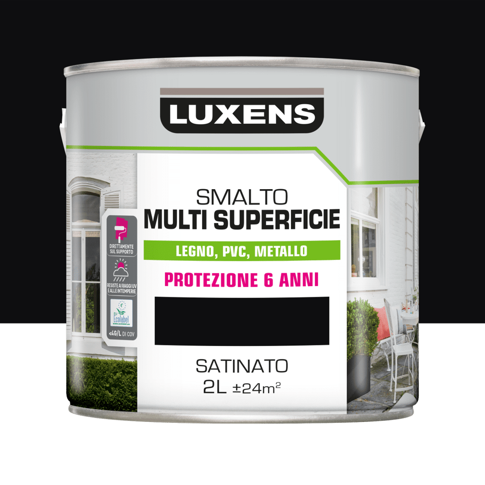 SMALTO ACQUA DA ESTERNO E INTERNO NERO SATINATO MULTI SUPERFICIE LUXENS 2LT