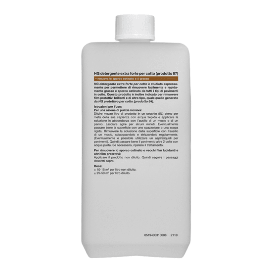 - Elimina rapidamente grasso, sporco e tutti i film protettivi (lucidanti e non) da tutti i pavimenti in cotto
