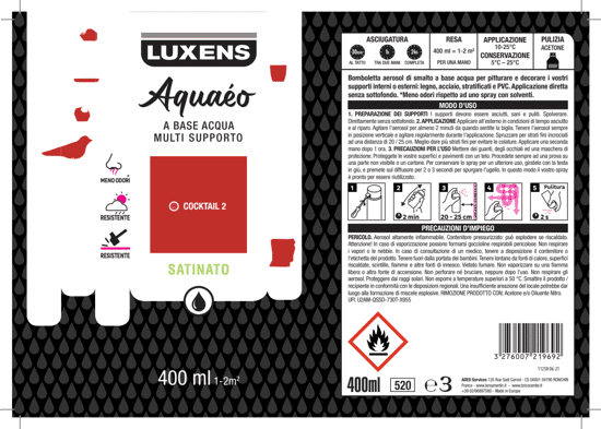 SPRAY ROSSO COKTAIL 2 SATINATO ACQUA 400 ML LUXENS