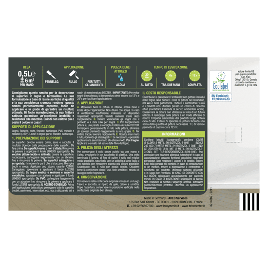 | Tempo di asciugatura al tatto (in h) | 0,3 |