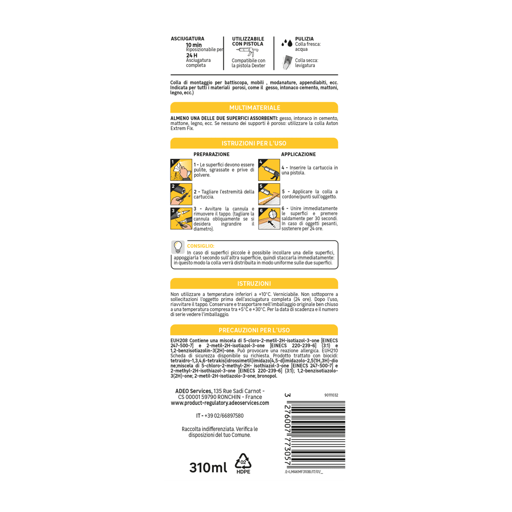 Ideale per incollare battiscopa, mobili , modanature, appendiabiti
