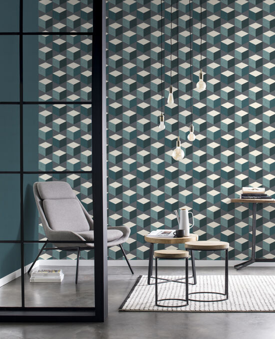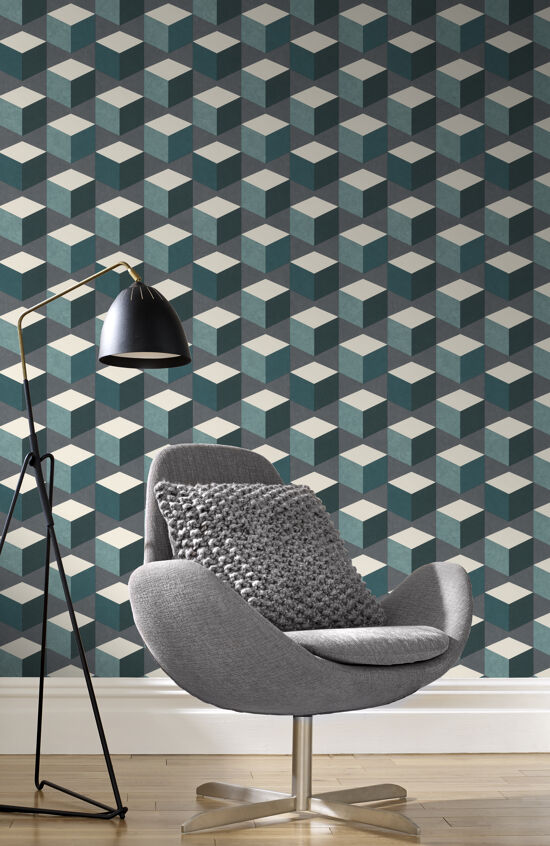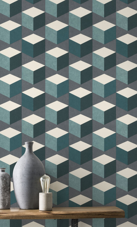 Carta da parati Cubik blu