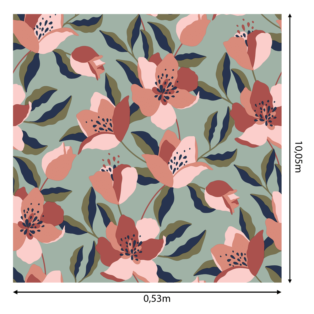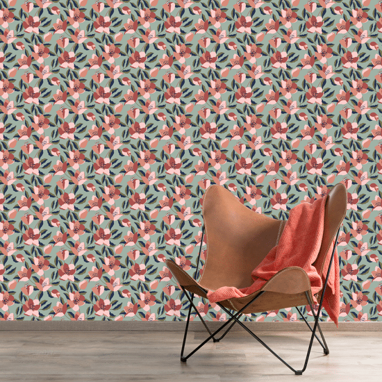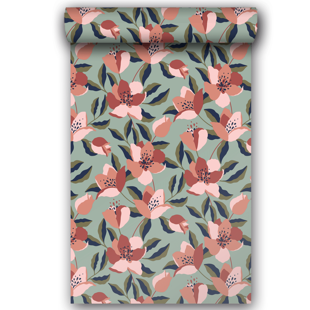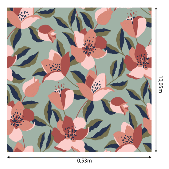 Carta da parati foglie rosa 53cmX10,5 mt