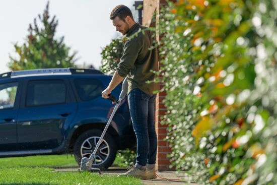 ideale per tutti i piccoli lavori di manutenzione del prato. Con una larghezza di taglio di 25 cm, è perfetto per l'uso tra i cespugli o in angoli inaccessibili con una falciatrice