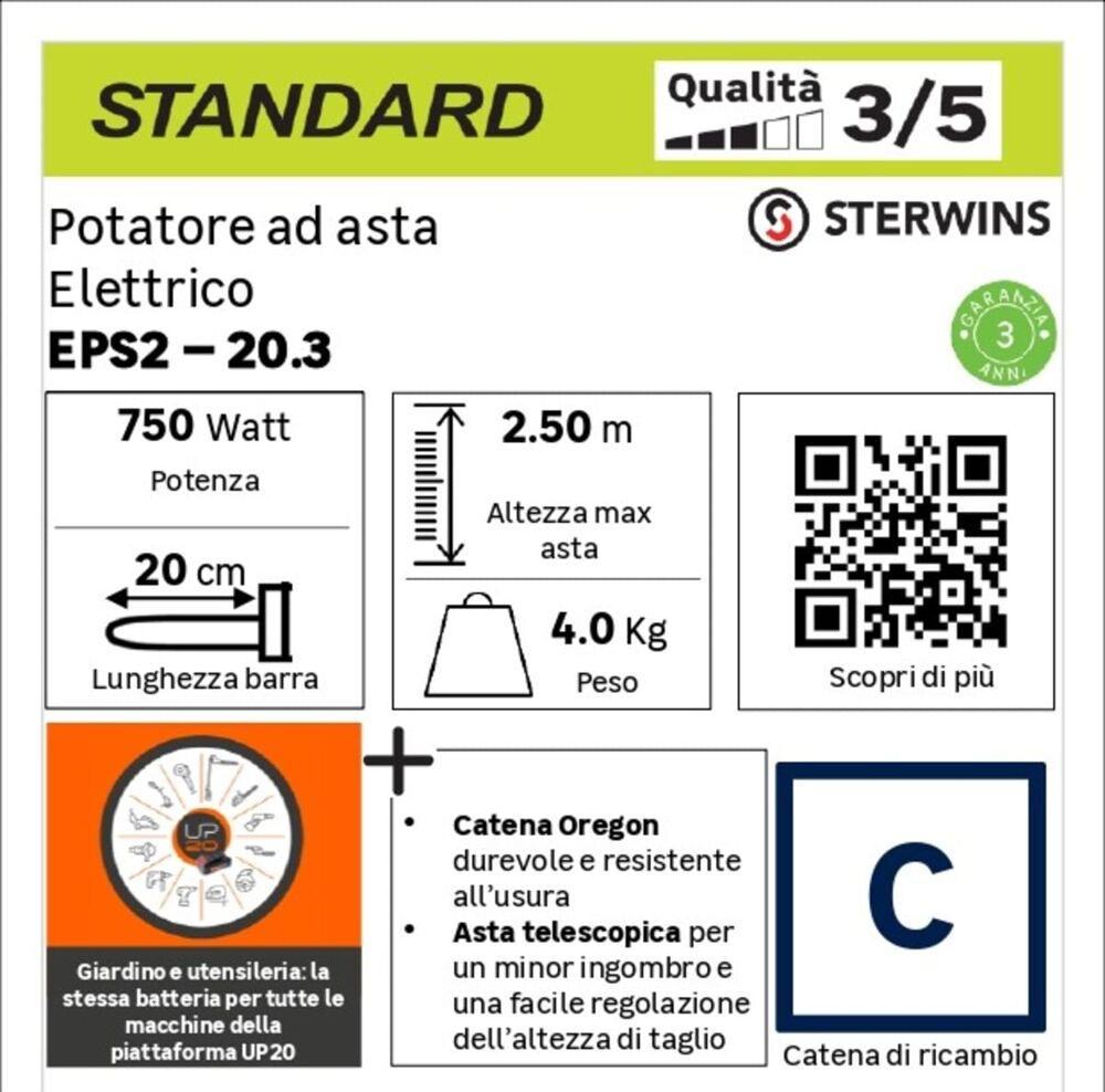 Motosega ad asta elettrica STERWINS EPS2-20.3, 750 W