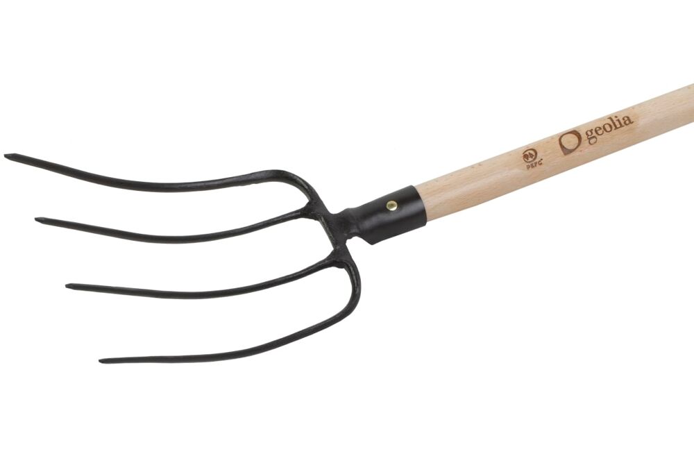 FORCA 4 DENTI GEOLIA IN ACCIAIO FORGIATO CON MANICO IN LEGNO DI FAGGIO PEFC 130CM