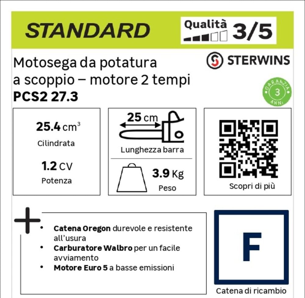 Motosega a benzina, 2 tempiSTERWINS PCS2-27.3, 25.4 cc