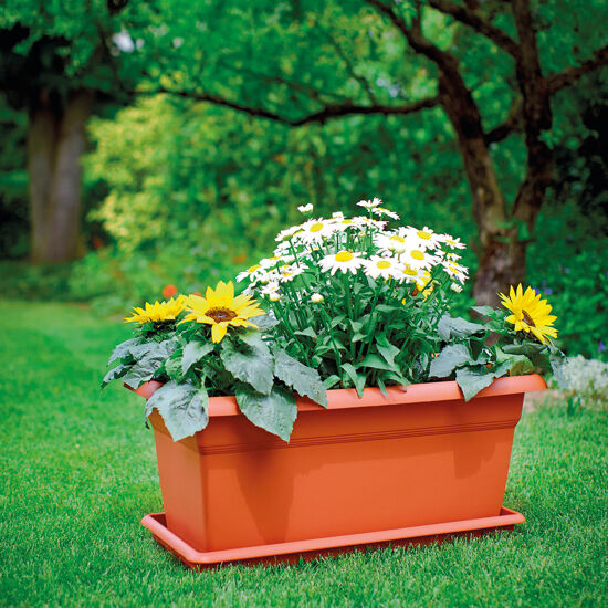 Sottovaso per fioriera Mediterraneo in polipropilene terra di siena 29 x 60 cm