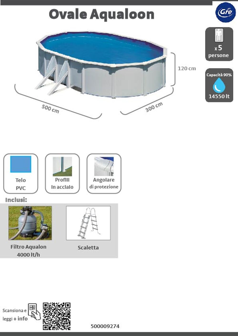 Piscina fuori terra ovale autoportante WET KIT500QWET, 5 x 3 m