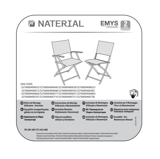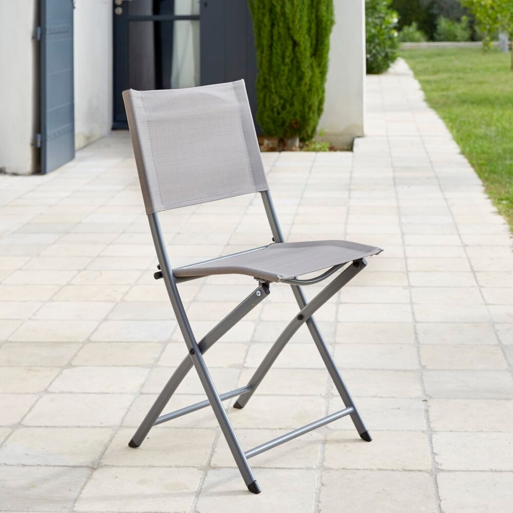 Sedia da giardino senza cuscino pieghevole in acciaio Emys NATERIAL colore grigio chiaro