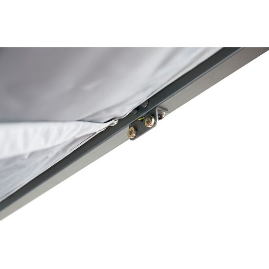 La copertura regolabile consente di modulare facilmente l’apertura in base alle condizioni climatiche, offrendo la massima flessibilità durante l’arco della giornata. Il telo assicura un blocco fino al 90% dei raggi UV, contribuendo a mantenere un ambiente ombreggiato e confortevole anche nelle giornate più soleggiate.