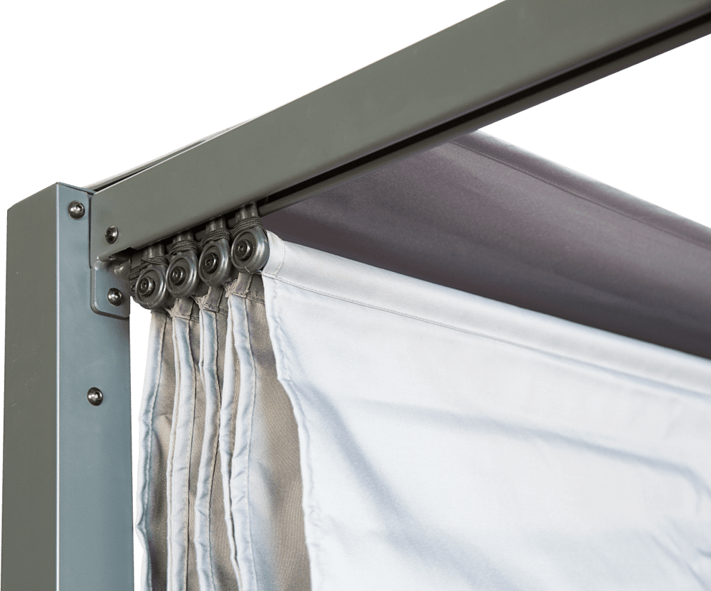 - La struttura è resistente alla ruggine ed alle intemperie, ed insieme alla possibilità di sostituire il telo garantisce alla pergola una lunga durata
