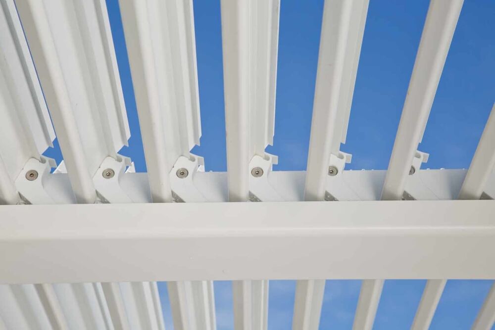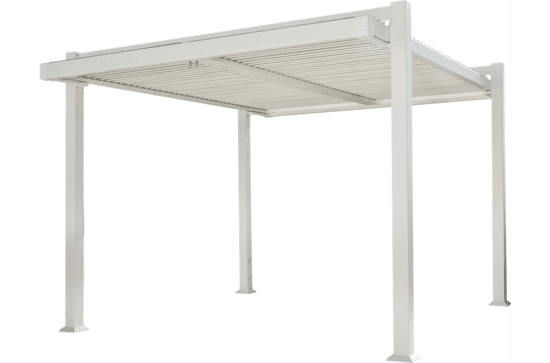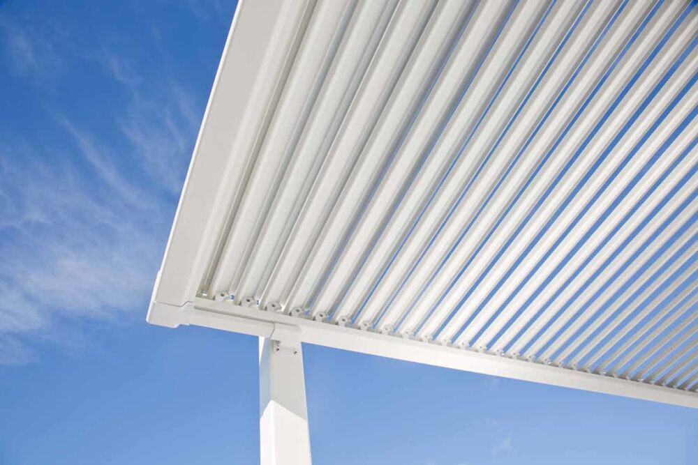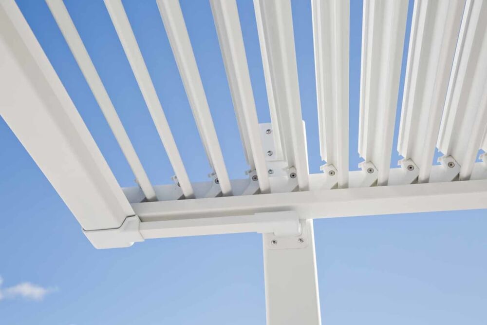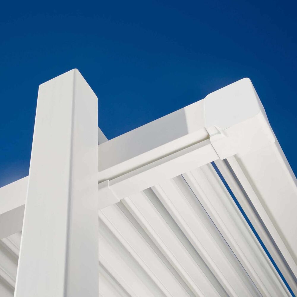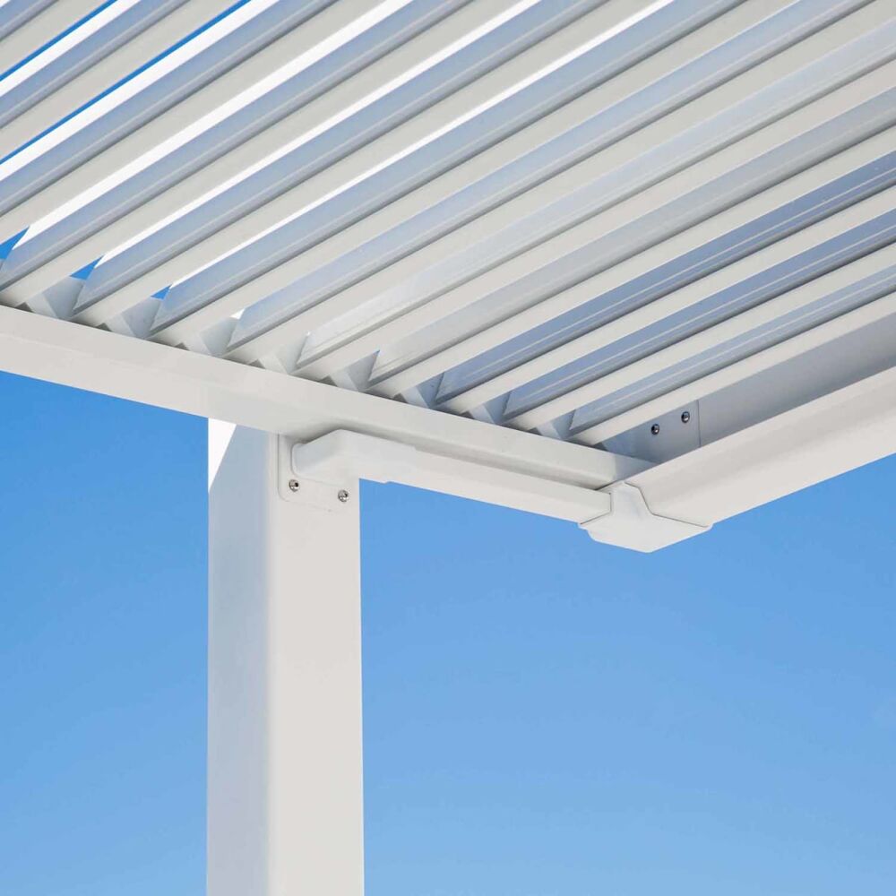 La pergola bioclimatica Persea è realizzata interamente in alluminio ad alta resistenza con verniciatura a polvere, un materiale ideale per l’uso outdoor grazie alla sua leggerezza, robustezza e resistenza agli agenti esterni.