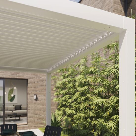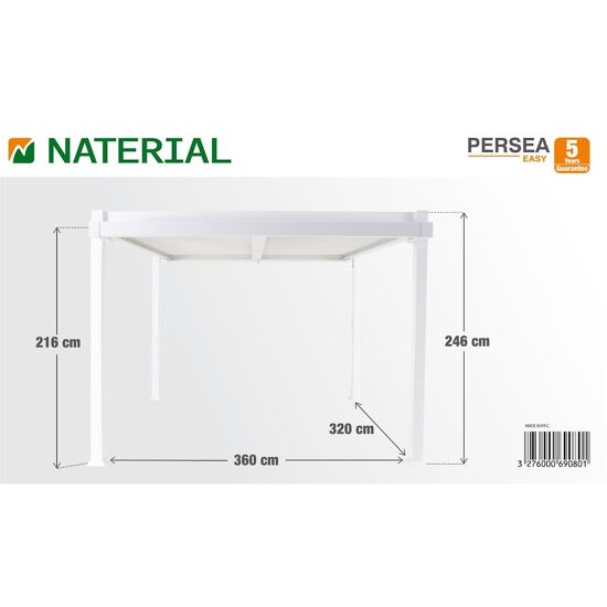 Pergola bioclimatica Persea Naterial in alluminio bianco, dimensioni 320x360xH 246 cm, superficie coperta 11,52 m²