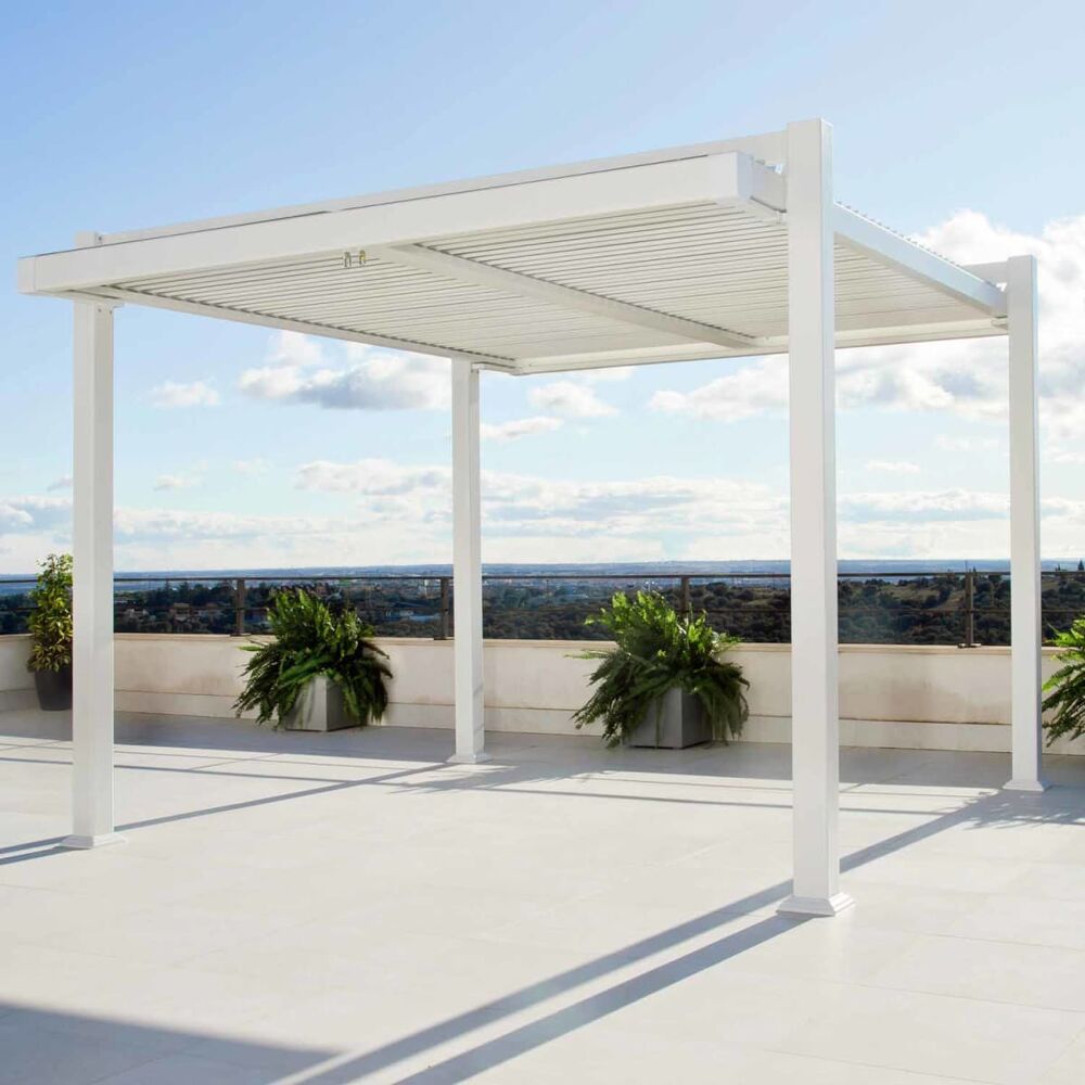 La pergola bioclimatica Persea in alluminio bianco è una soluzione elegante e funzionale per valorizzare giardini, terrazzi e spazi outdoor con una copertura moderna, resistente e progettata per durare nel tempo. Il design pulito e contemporaneo si abbina facilmente a diversi stili architettonici, migliorando l’estetica e la vivibilità dell’ambiente esterno.