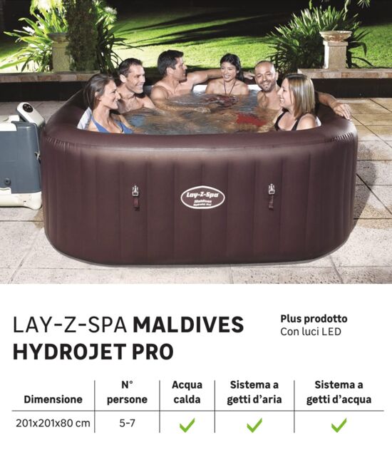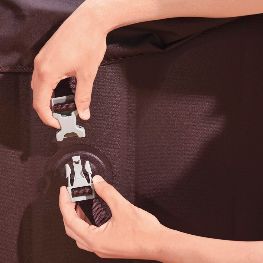 - Copertura rinforzata inclusa con clip di sicurezza che permette di mantenere la temperatura dell'acqua della spa