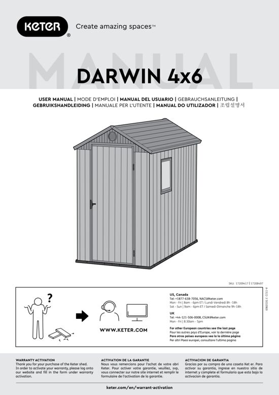 Casetta da giardino in polipropilene DARWIN mod. 4X6 EVOTECH, dimensioni interne 177x112, superficie interna 1.98 mq, dimensioni esterne: 184,5x118,8 e spessore parete 16 mm
