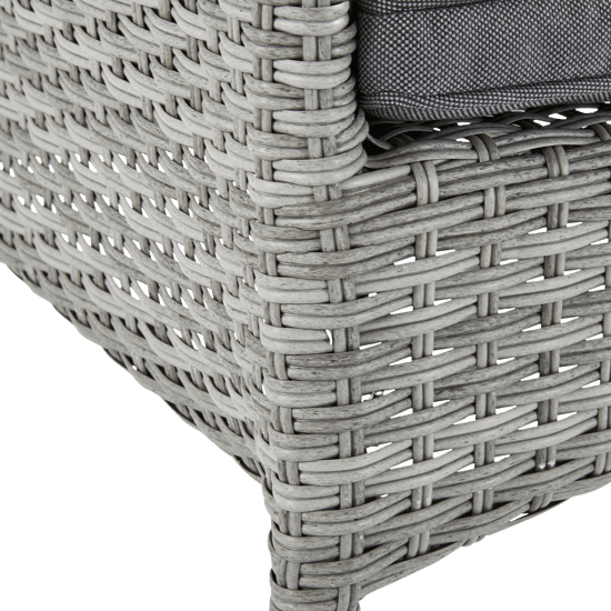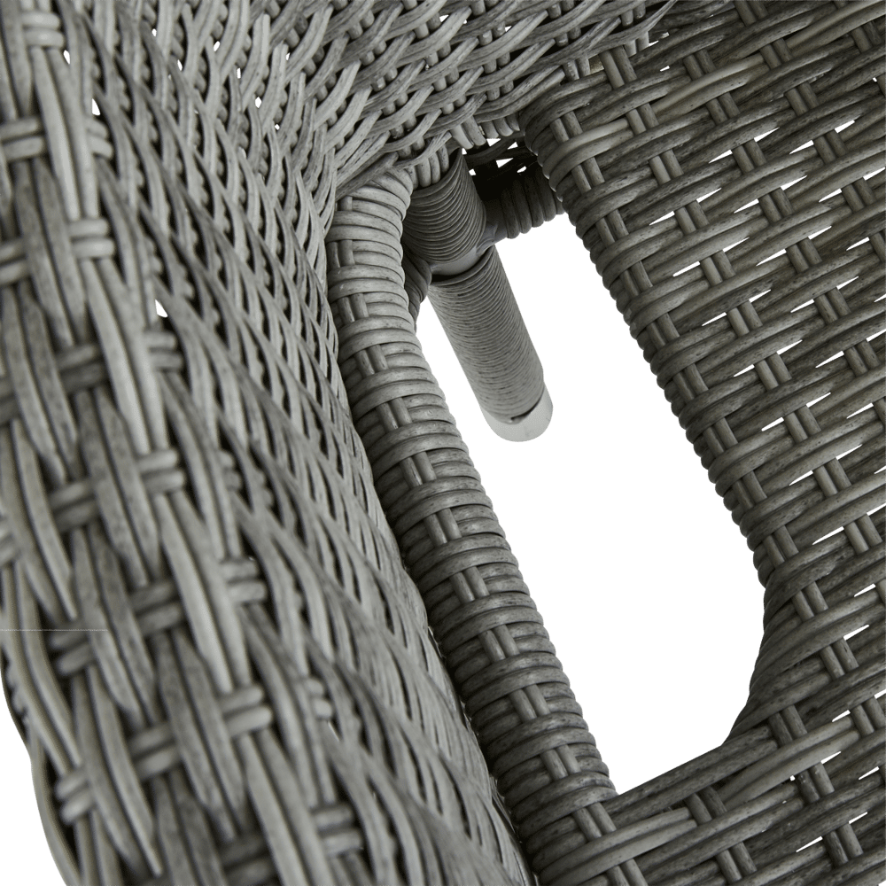 - Le sue curve eleganti e l'intreccio in resina grigia, ispirate al rattan, conferiscono uno stile senza tempo alla tua zona pranzo.