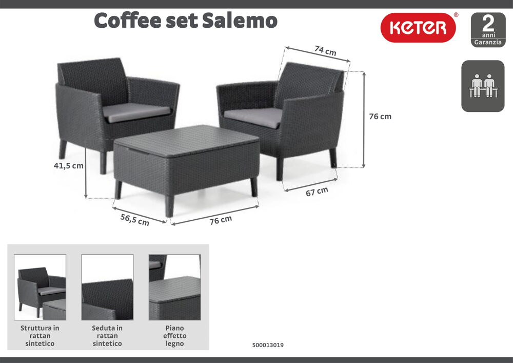 | Composizione dettagliata del set | 2 poltrone 1 tavolino |