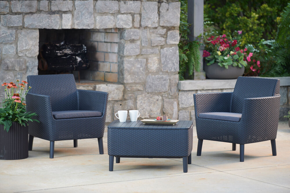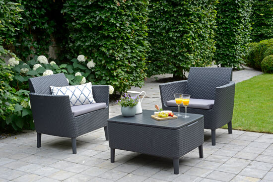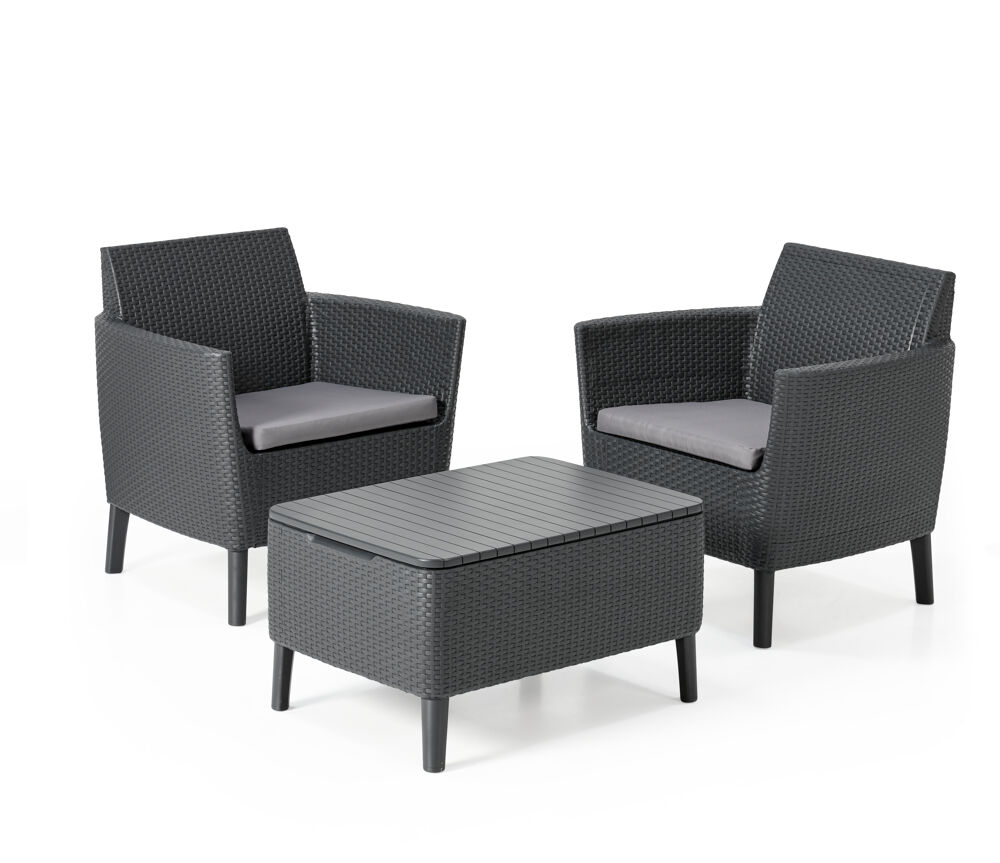 Salotto da giardino Salemo KETER in polipropilene antracite con cuscini in policotone grigio / argento per 2 persone