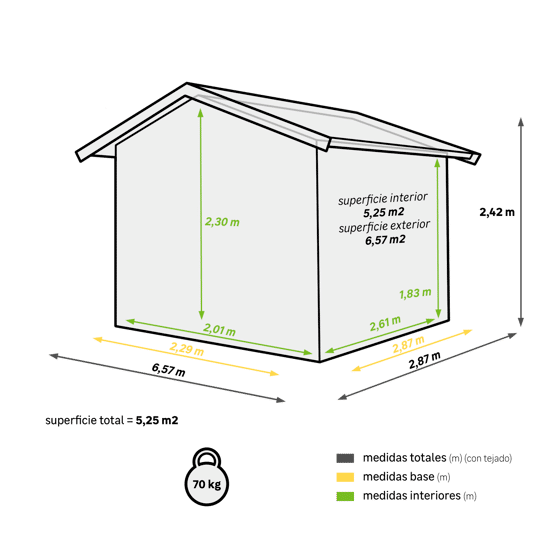 - Ampia apertura, la doppia porta e il soffitto sufficientemente alto permettono di riporre anche attrezzi di grandi dimensioni - Facile da assemblare grazie ai pannelli pretagliati - Durevole e resistente agli agenti atmosferici, i rinforzi metallici rendono la casetta durevole nel tempo, garantendo stabilità e resistenza ai carichi di neve fino a 150 Kg/m², senza necessità di manutenzione - Il pavimento rialzato mantiene il contenuto asciutto e pulito ed è ideale anche per sopportare anche carichi pesanti - La finestra e il lucernario forniscono allo spazio interno un'illuminazione naturale, ideale per riporre le piante nel periodo invernale - Realizzata con innovativi pannelli in DUOTECH, dotati di particolari finitura che riproduce gli effetti del legno spazzolato.