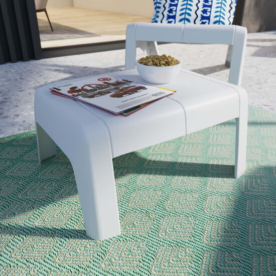 - Ecologico: questo tavolino della gamma Halios è realizzato in Europa, con un minimo garantito del 75% di plastica riciclata. È anche completamente riciclabile.