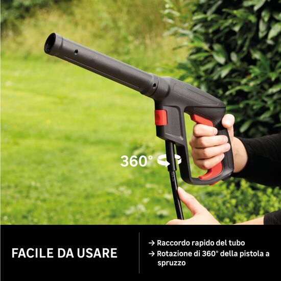 | Accessori inclusi | Ugello 5 in 1, pistola a spruzzo, tubo 8 m, cavo 5m, adattatore di ingresso dell'acqua, filtro, ago per calcare, detergente, set di guarnizioni |