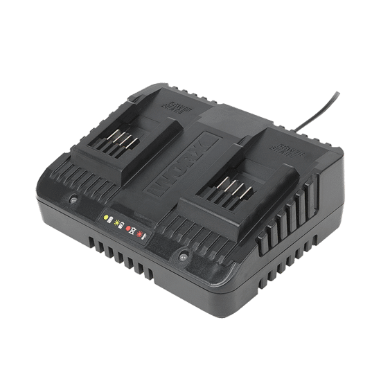 Adatto per tutte le batteriedella gamma Worx 20V, ideale anche per chi ha un utensile da 40V, poichè consente di caricare due batterie contemporaneamente.
