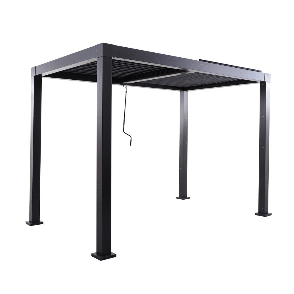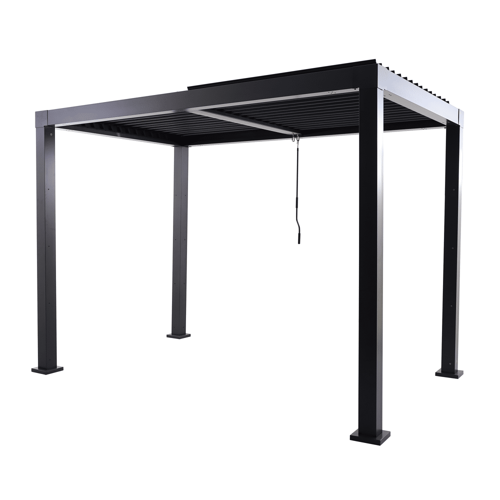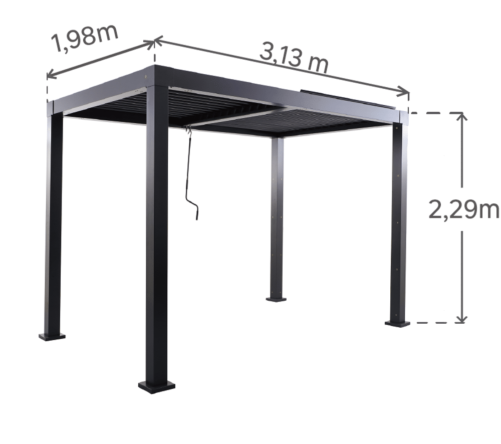 - Installazione semplice e manutenzione quotidiana: realizzata in alluminio ad alta resistenza, la pergola bioclimatica si fissa al suolo con i suoi quattro piedi sulla superficie piana di vostra scelta nel vostro giardino, per resistere alle tempeste e avere sempre uno spazio protetto dalle intemperie.