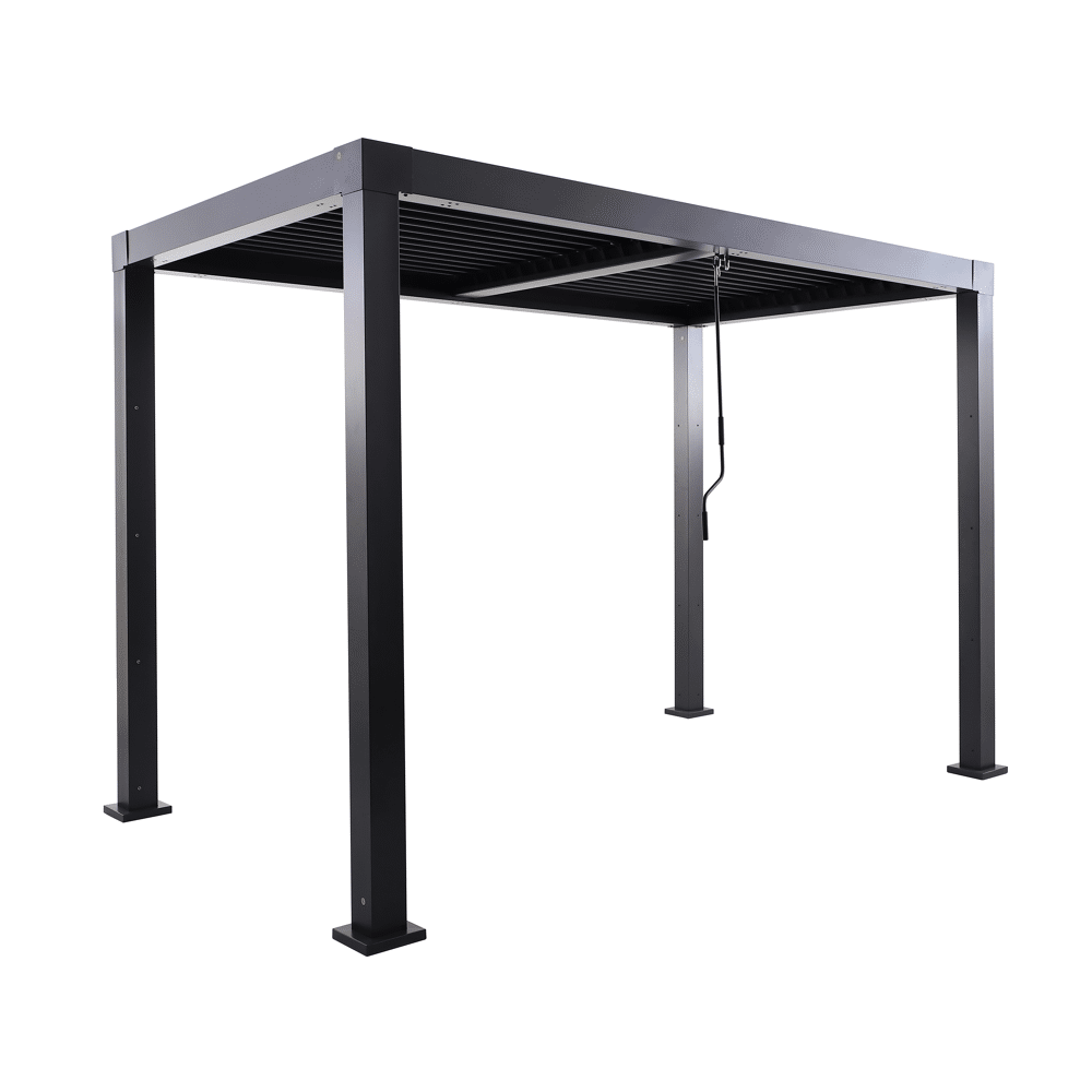 La pergola bioclimatica in alluminio antracite Clima con lamelle regolabili, è ideale per creare protezione e comfort negli spazi outdoor come giardino e patio. La pergola Clima è una soluzione architettonica pensata per valorizzare gli spazi esterni, offrendo un equilibrio ideale tra funzionalità, design e protezione. Grazie alla sua struttura in alluminio e alla copertura orientabile, questa pergola da esterno trasforma il giardino in un ambiente da vivere in ogni stagione, creando un’area outdoor protetta e accogliente.