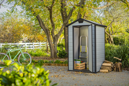 Casetta da giardino KETER in polipropilene Exclusive Grigio chiaro con porta battente semplice, superficie totale 1.33 m² e spessore parete 16 mm