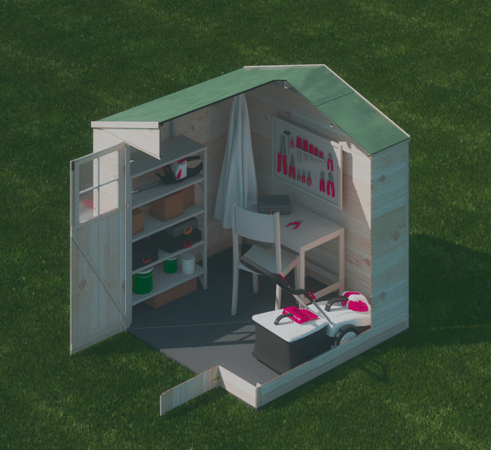 - La sua costruzione in pannelli di legno massiccio di 12 mm di spessore e il suo pavimento robusto garantiscono una grande durata