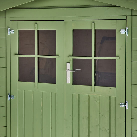 Casetta da giardino NATERIAL in legno tanaga con porta doppio battente, superficie totale 9.62 m² e spessore parete 28 mm