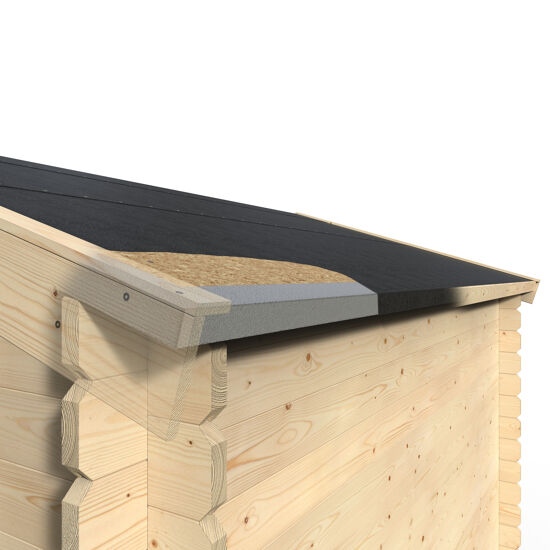 - Il tetto a doppia falda, rivestito in feltro bituminoso, garantisce un'efficace protezione dalle intemperie, preservando così i vostri effetti personali in un ambiente sicuro e ben ventilato