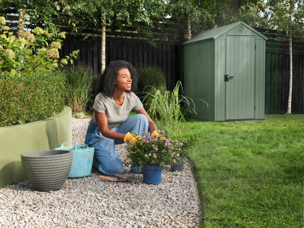 Casetta da giardino KETER Darwin in polipropilene verde con porta battente semplice, superficie interna 2 m² e spessore parete 16 mm