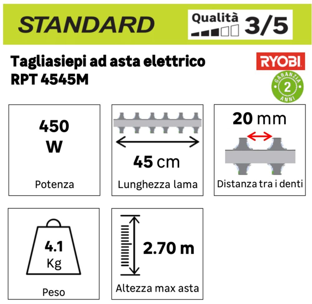 Tagliasiepi ad asta elettrico RYOBI RPT4545E 450 W