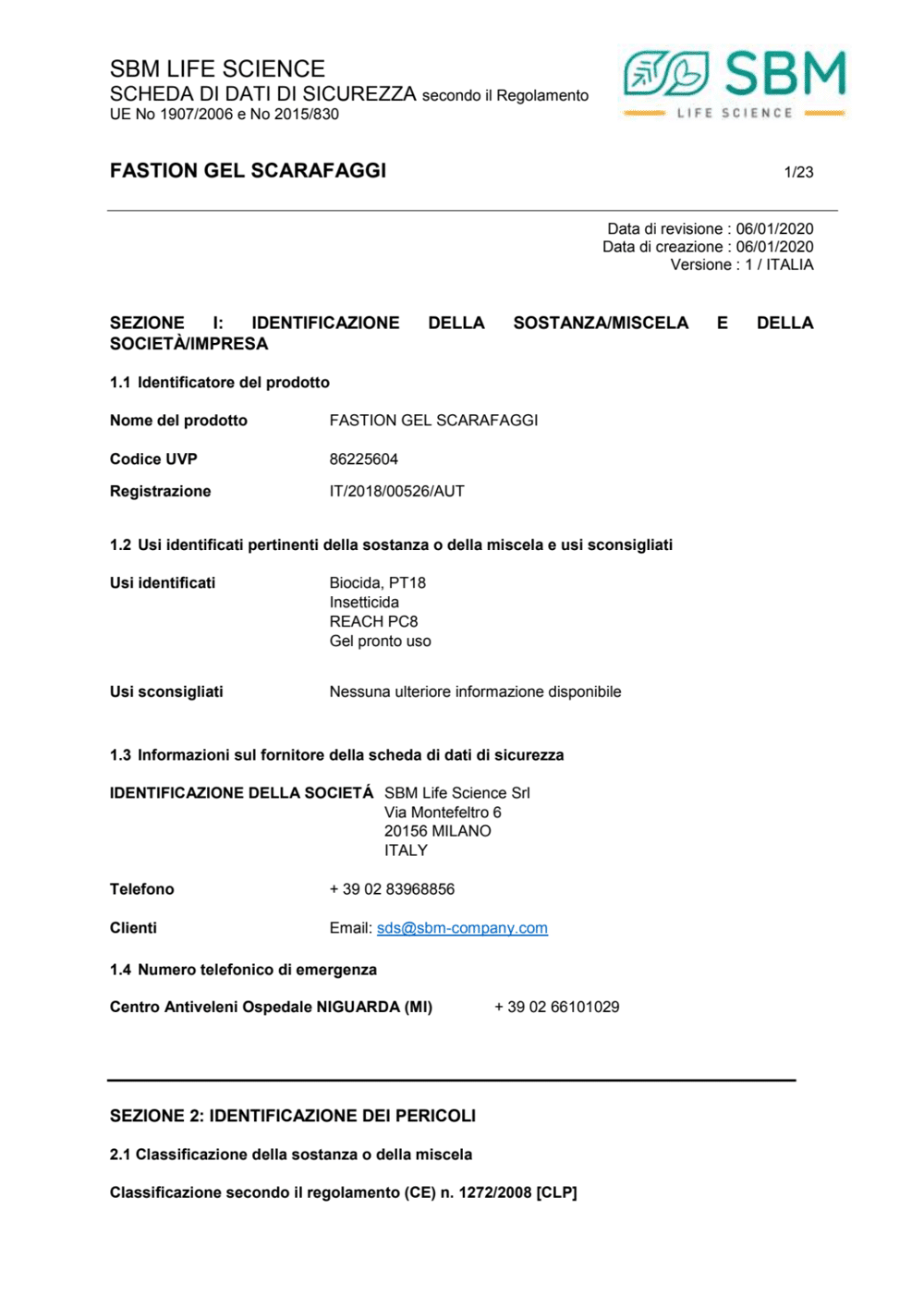 | Modalità di azione | Contatto e ingestione |