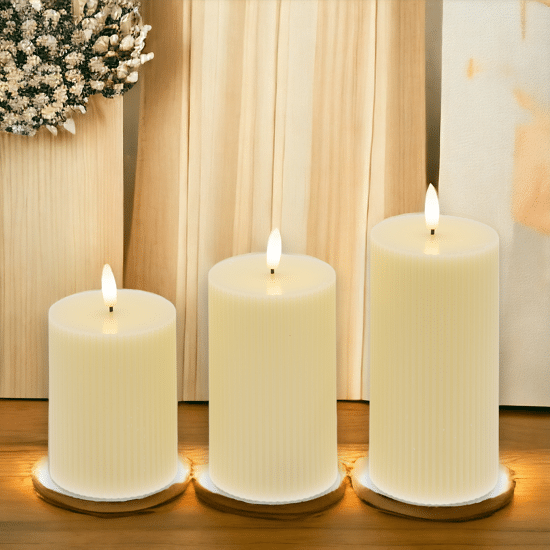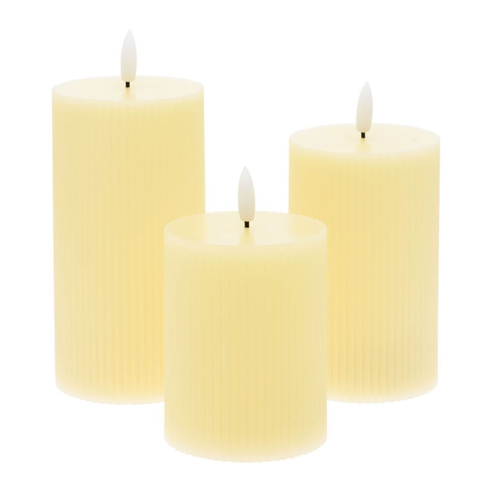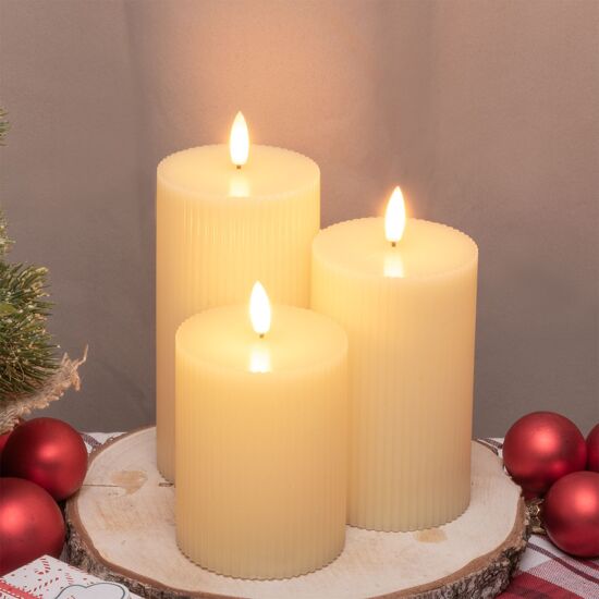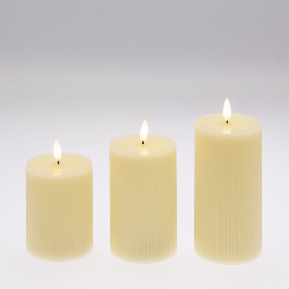 Set 3 candele avorio diam 7,5CM H 10-12,5-15 CM