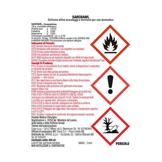 | Modalità di azione | Contatto (sostanza a effetto choc che attacca direttamente il parassita) |