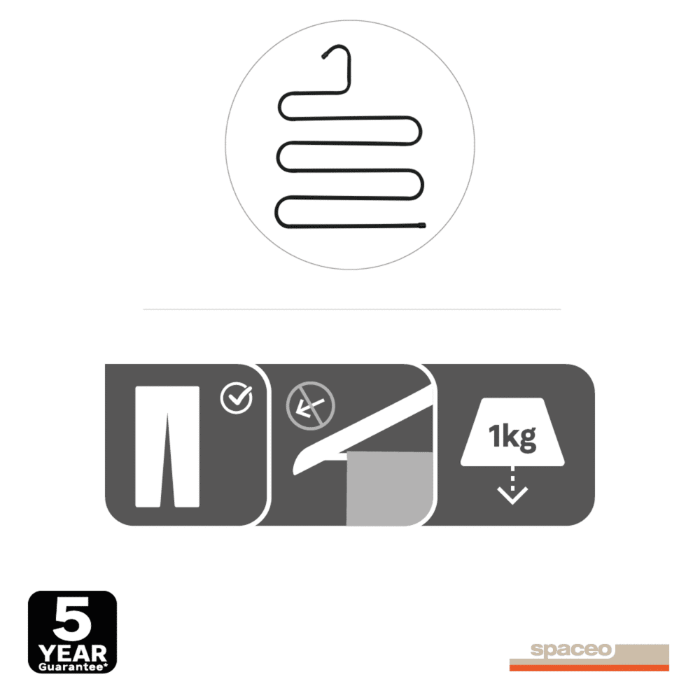 - salvaspazio, ideale per sistemare 5 paia di pantaloni nello spazio di una sola gruccia