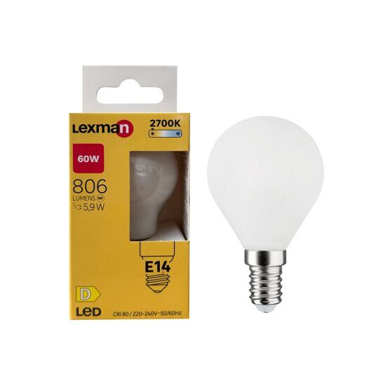 Lampadina LED, E14, sferico, bianco, luce calda, 5.9W=806LM (equiv 60 W), 330° , LEXMAN