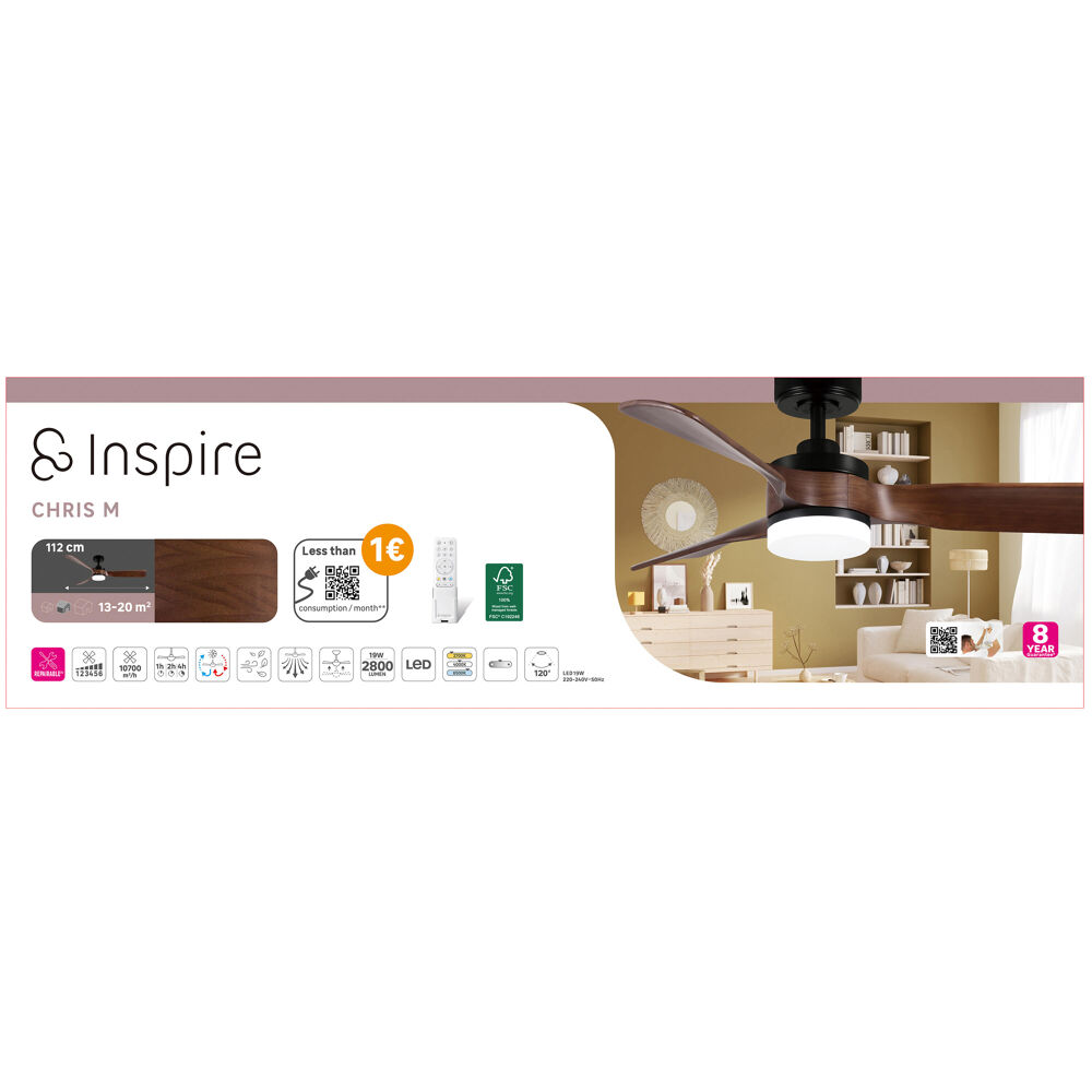 Ventilatore da soffitto Chris e pale effetto legno scuro