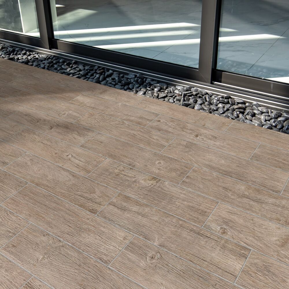 - Il materiale principale è gres porcellanato smaltato color tortora con effetto legno. Ideale per la sovrapposizione sul vecchio pavimento