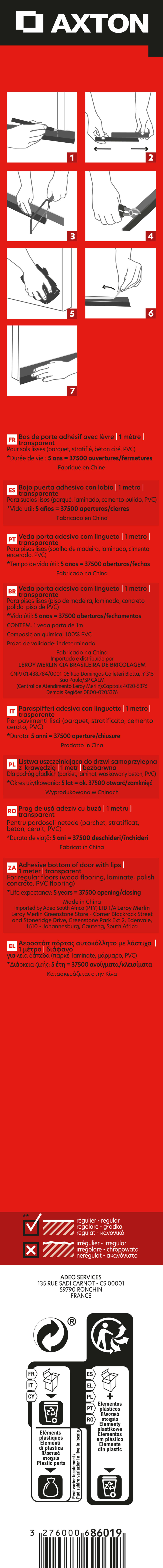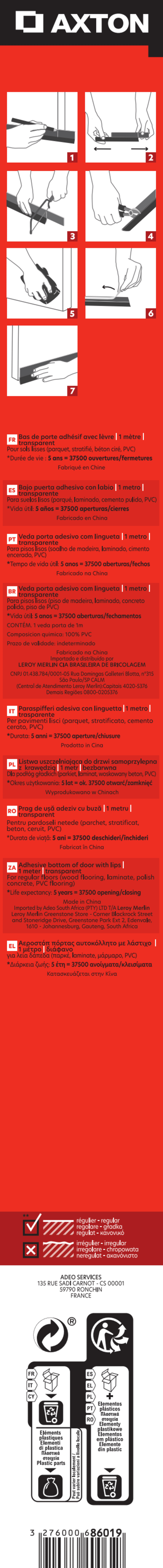 SOTTO PORTA ADESIVO IN PVC 1MT TRASPARENTE AXTON