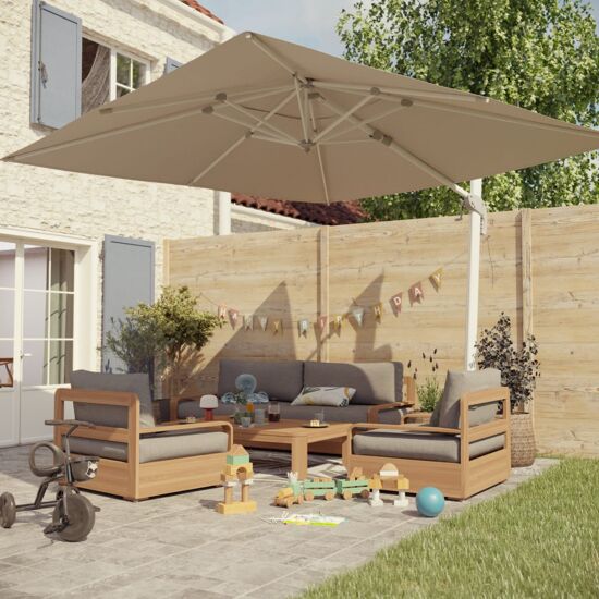 - I suoi ampi braccioli e morbidi cuscini idrorepellenti ti offrono un comfort ottimale