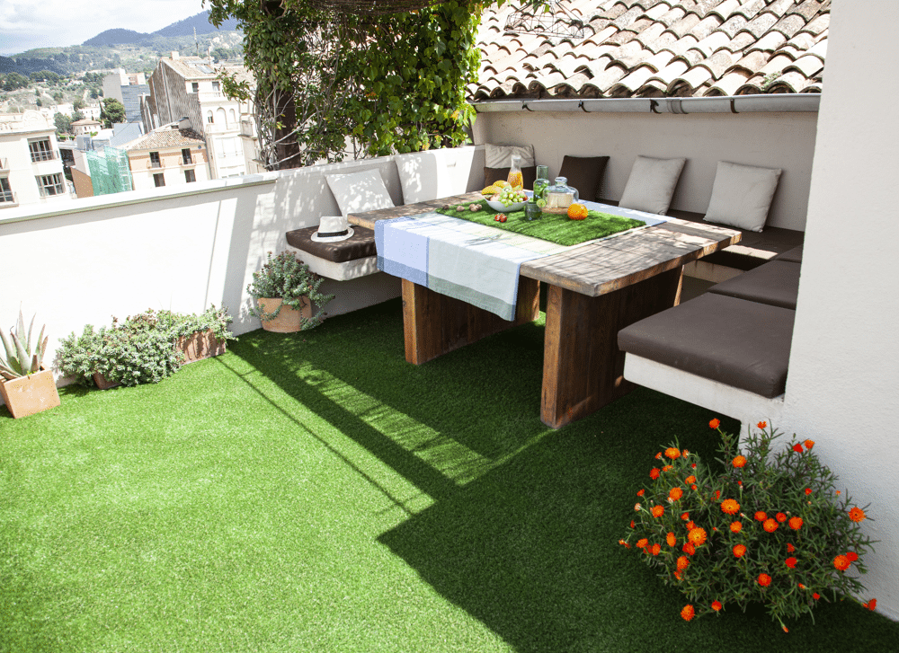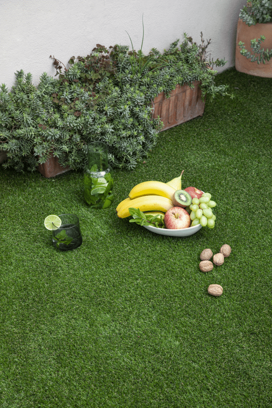 - La produzione del prodotto è impostata per emettere il 30% in meno di CO². Non si deteriora a contatto con l'acqua, poiché è permeabile e ha una capacità di drenaggio di 60 litri/ora. È resistente ai raggi UV e alle temperature estreme, quindi rimane verde tutto l'anno