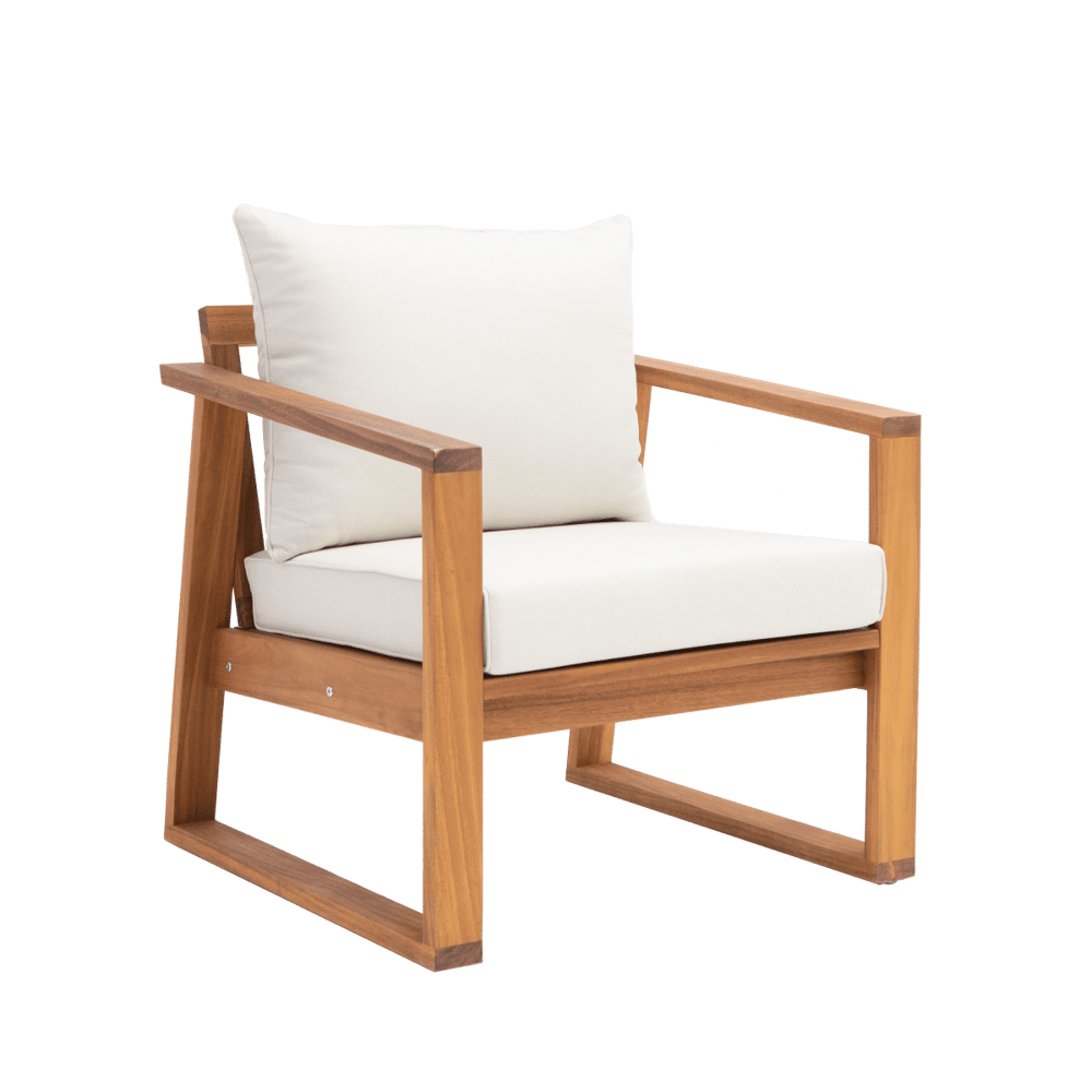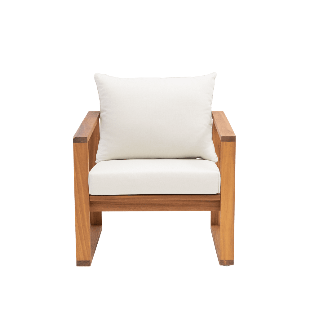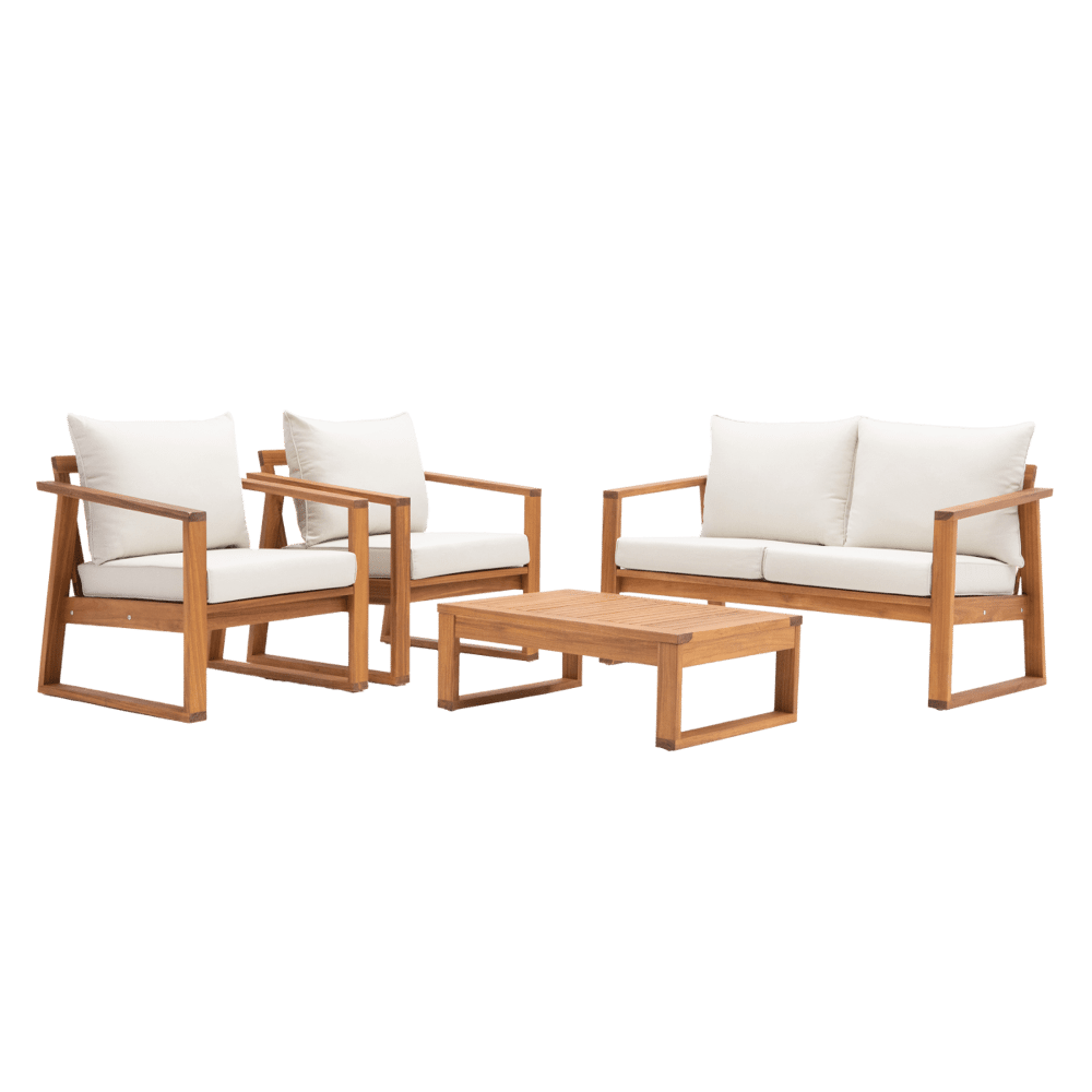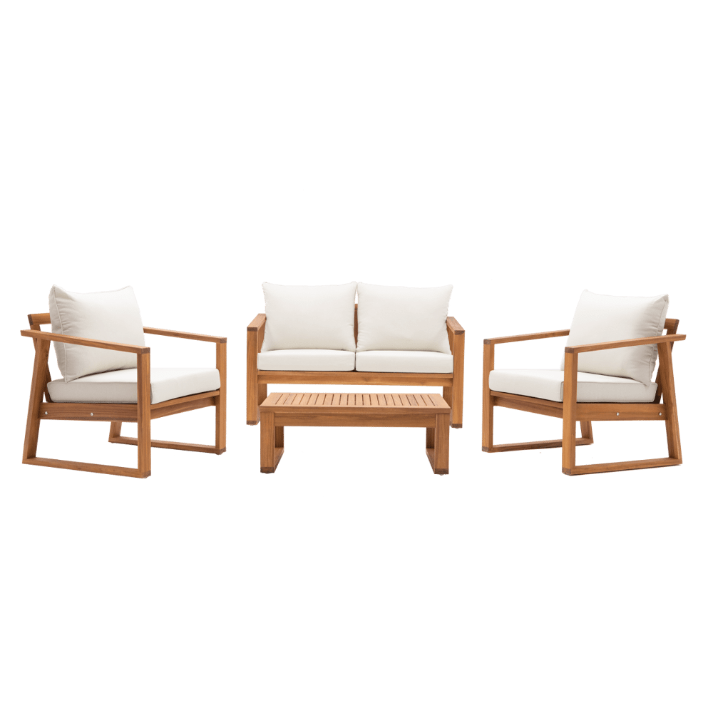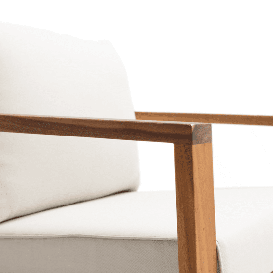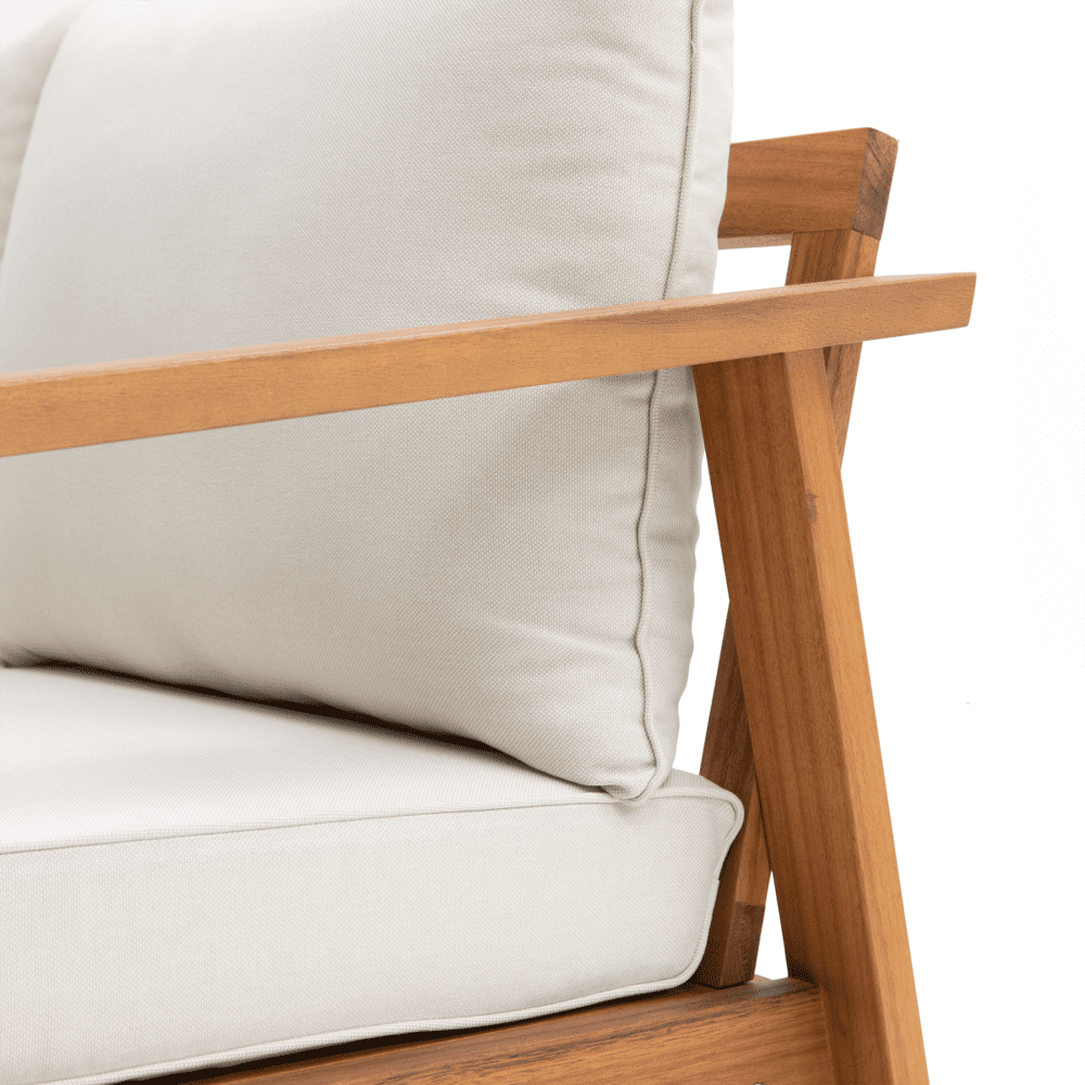 - La sua struttura in acacia e i cuscini morbidi e idrorepellenti ti offriranno comfort e resistenza all'umidità, per goderti le lunghe serate estive stagione dopo stagione