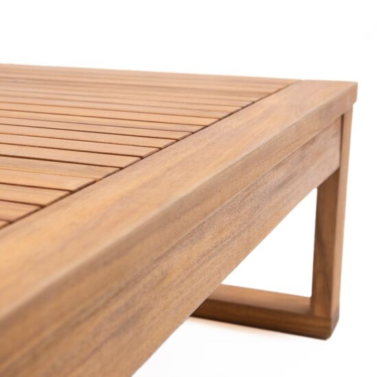 La struttura in acacia finitura miele dona calore e luminosità all’ambiente esterno. Le linee pulite e la tonalità naturale rendono questo salotto facilmente abbinabile ad altri elementi della stessa serie, come tavoli, sedie e sdraio Solaris, per creare uno spazio armonioso e coordinato.