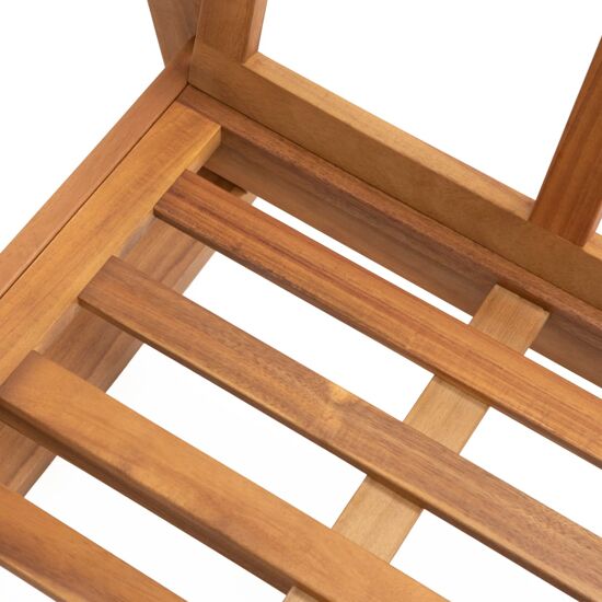 Per mantenere uniforme la finitura miele dell’acacia, applica periodicamente un olio protettivo e utilizza una copertura traspirante nei mesi invernali. Riponi i cuscini in un luogo asciutto durante lunghi periodi di non utilizzo per preservarne morbidezza e colore.